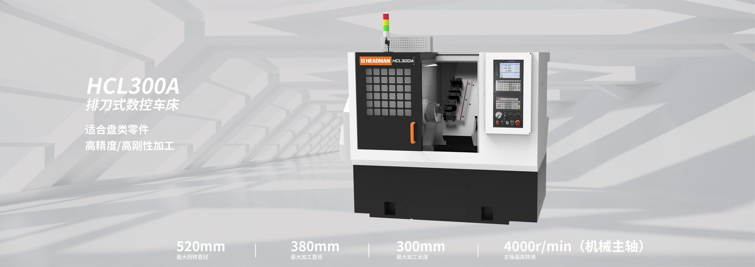 采用45°整體斜床身結構,剛性好、排屑方便