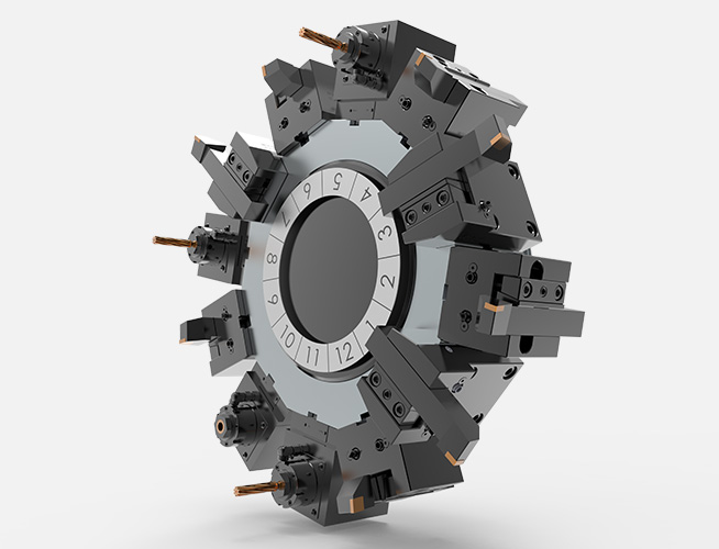 動力刀塔采用BMT接口,四鍵定位,螺栓緊固,定位可靠、精度高、剛性高。