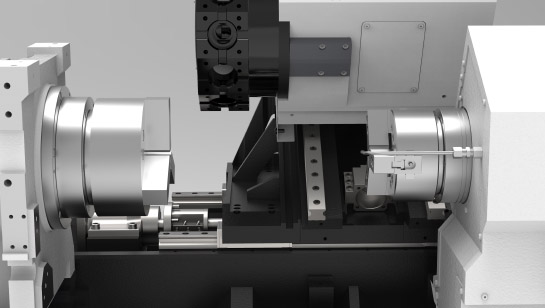 ? 通過(guò)雙主軸結(jié)構(gòu)實(shí)現(xiàn)同步對(duì)接,完成一次裝卡,正反兩面加工零件。